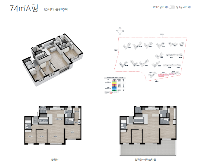 국민주택은 74 타입과, 84 타입 두 유형으로 나뉩니다.