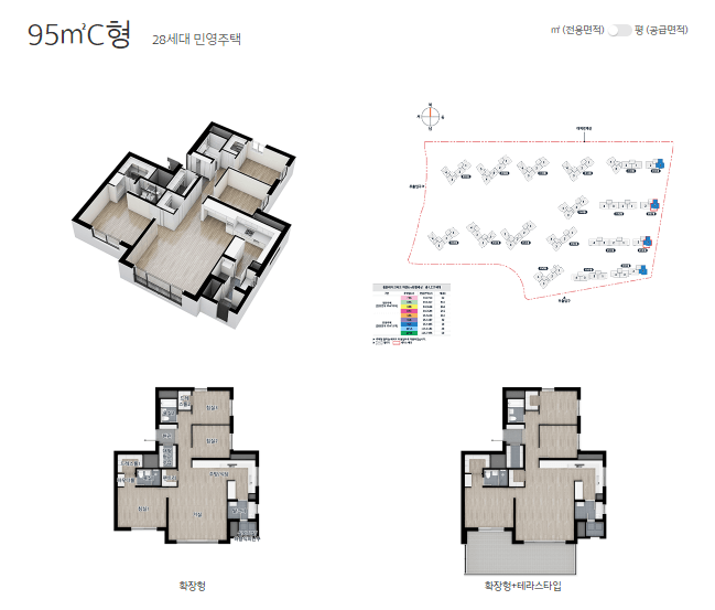 민영주택은 대형평수로 95 타입과, 115 타입 두 유형으로 나뉩니다.